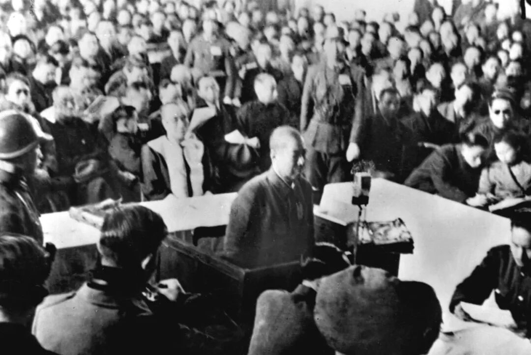 这是抗日战争胜利后,制造南京大屠杀的主要罪犯、日军第6师团师团长谷寿夫被押上审判台并被处死刑。新华社发