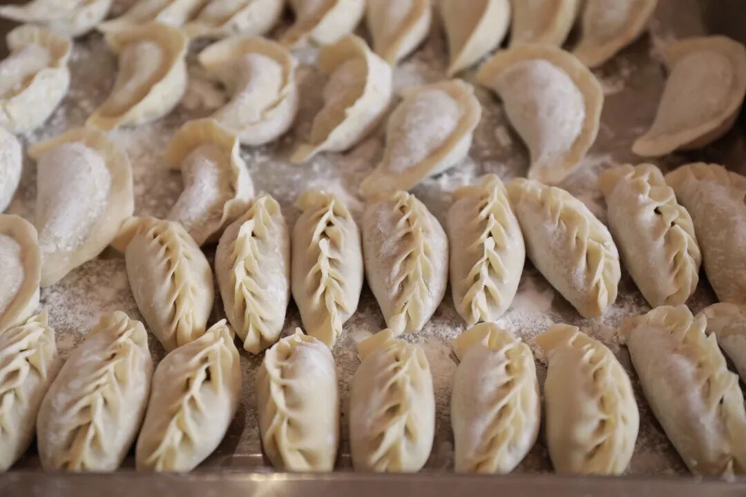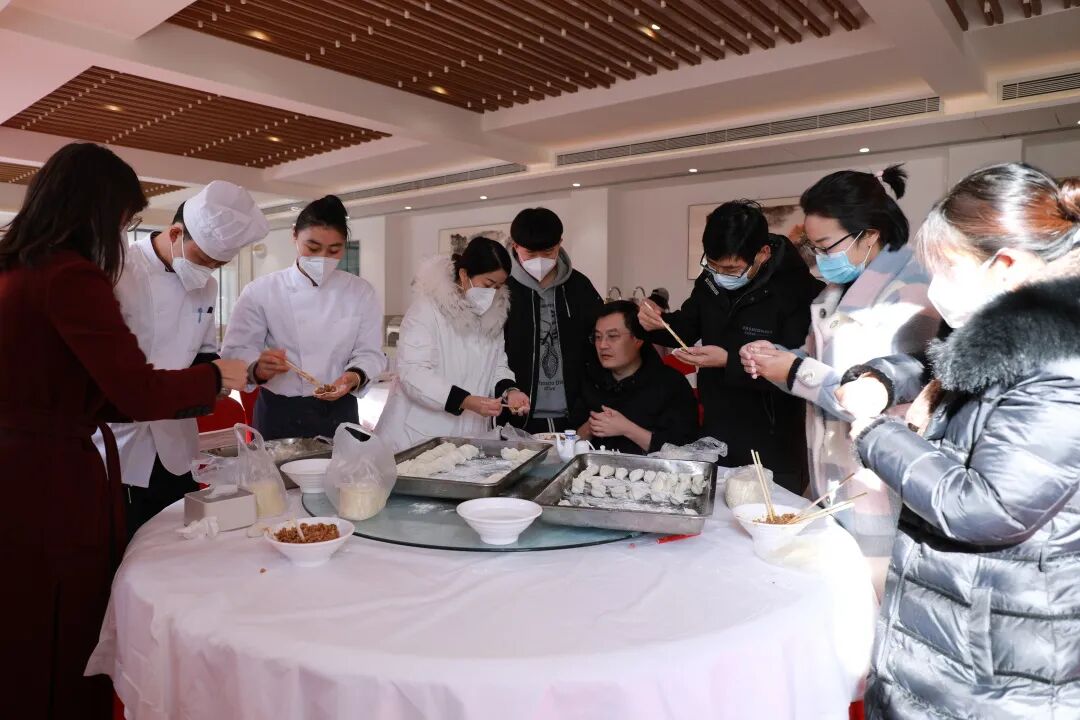 大家分工协作,相互配合,气氛浓烈,热情高涨。在暖阳包裹下,在欢声笑语中,和面、调馅、擀皮,一起动手包饺子,共同体会节日的快乐。不一会儿功夫,面前的盘子里就摆满了各式各样漂亮的饺子。