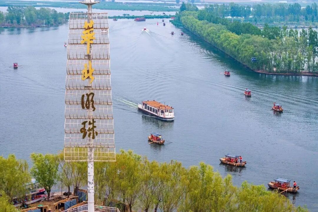 河北雄安新区白洋淀旅游码头游船来往穿梭