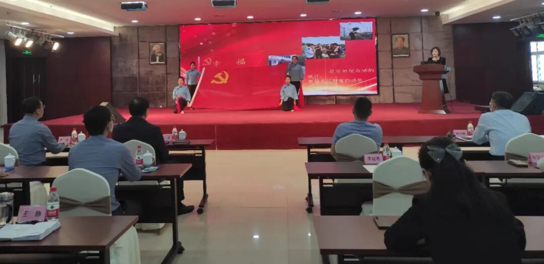 闫志红以辉县市孟庄镇南李庄村党建展览馆《一面特殊的党旗》讲起,辅以文艺表演,讲述了范家范清荣、范海涛、范斌三任“书记”的故事。
